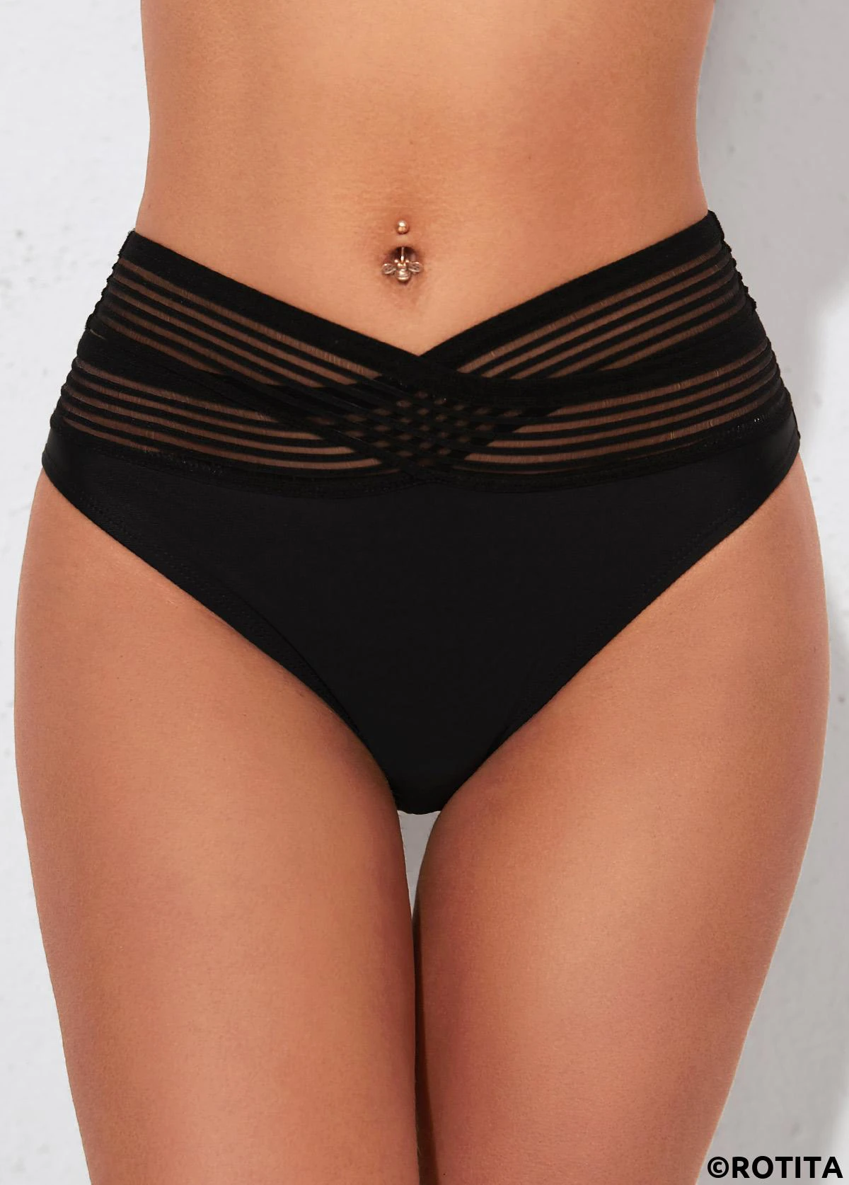 > Bademode > Badehose unten/ Rotita Badehöschen mit hohem Bund und schwarzen Kreuzträgern