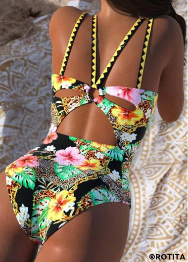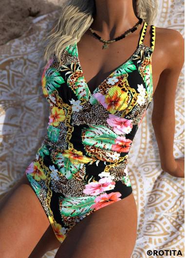Heim > Bademode > Einteilige Badebekleidung/ Rotita Badeanzug mit Bauchkontrolle schwarz mit Blumenmuster