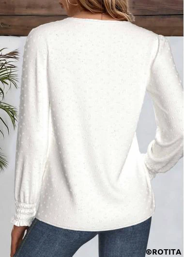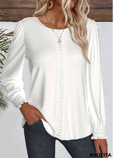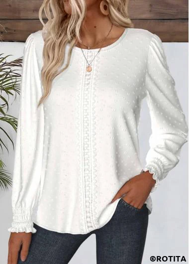 Heim > Oberteile > Blusen/ Weiße Bluse mit Rundhalsausschnitt und langen Ärmeln und Rotita-Stickerei