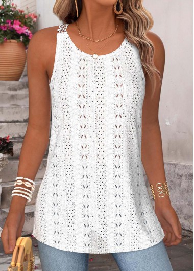 Nouvelle dans Débardeur sans manches blanc brut à col rond couvrant le ventre Rotita