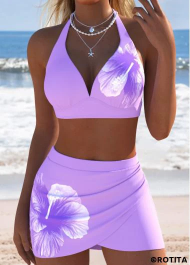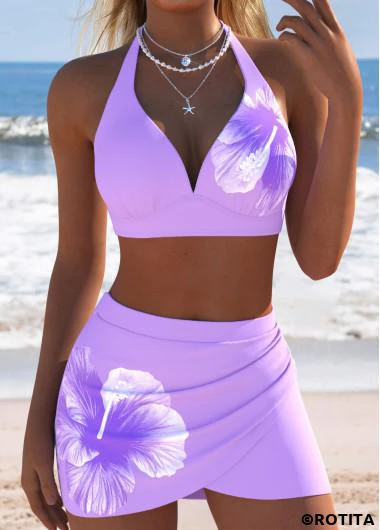 Maison > Maillots de bain > Bikinis > Ensembles de bikini/ Ensemble bikini Rotita à imprimé floral violet clair