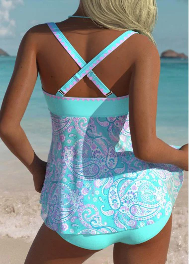 Maison > Maillots de bain > Tankinis > Ensembles Tankini/ Ensemble tankini Rotita à imprimé cachemire vert menthe couvrant le ventre