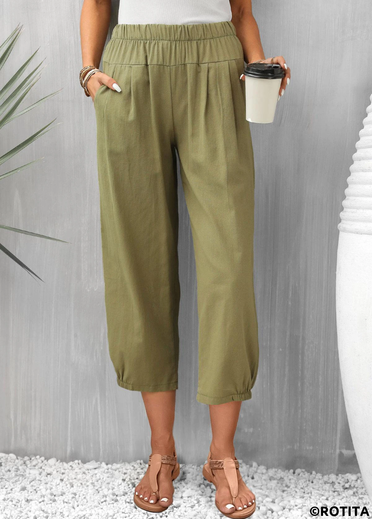 Maison > Bas > Pantalon/ Pantalon Taille Élastique Régulier Vert Olive Poche