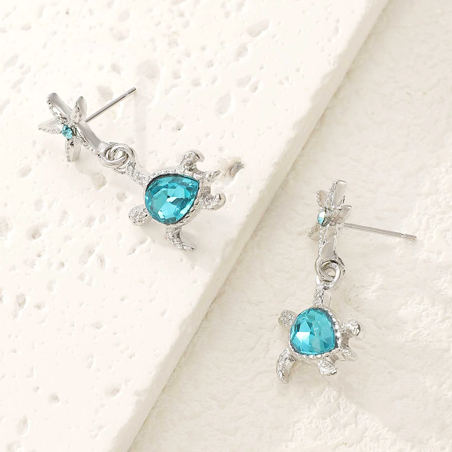 Maison > Bijoux > Des boucles d'oreilles/ Boucles d'oreilles tortue étoile de mer bleu néon en alliage