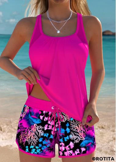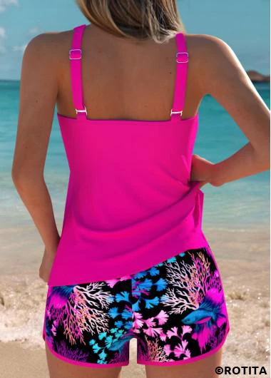 Maison > Maillots de bain > Tankinis > Ensembles Tankini/ Ensemble tankini rose fuchsia imprimé vie marine Rotita couvrant le ventre