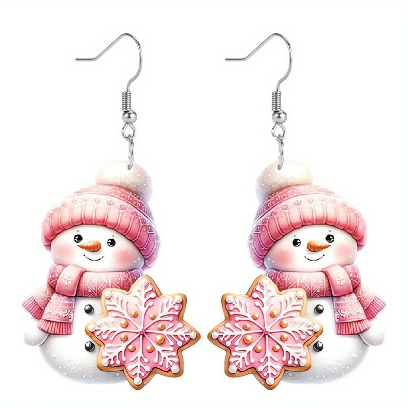 Maison > Bijoux > Des boucles d'oreilles/ boucles d'oreilles de Noël en forme de bonhomme de neige rose et flocon de neige