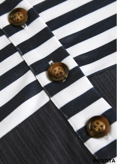 Vente sweat-shirt à col fendu rayé bleu marine à boutons taille plus rotita