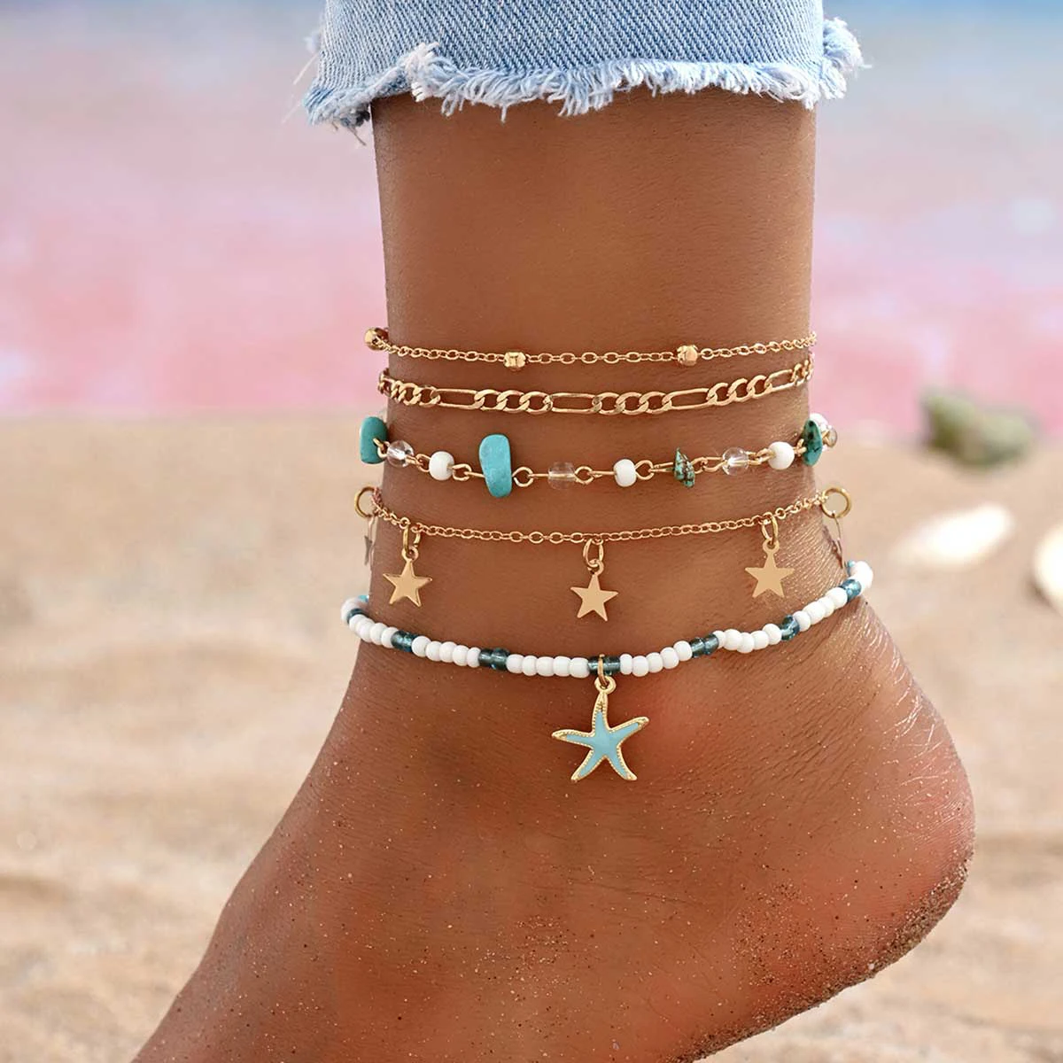 Maison > Bijoux > Bracelets de cheville/ bracelets de cheville en alliage vert menthe ornés de perles