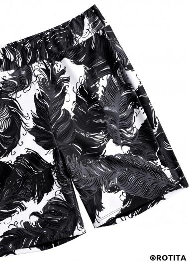 Maison > Grande taille > Maillots de bain grande taille > Tankini grande taille > Ensembles Tankini Grande Taille/ ensemble tankini noir à imprimé plumes grande taille rotita