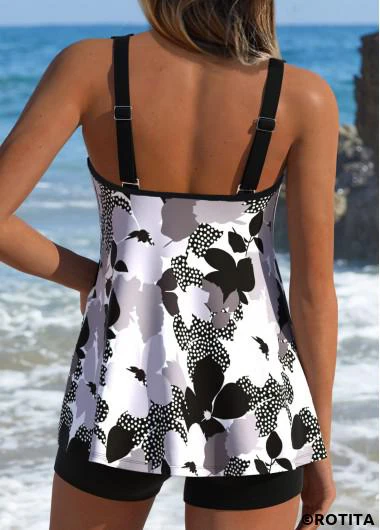 Nouvelle dansDimensionnement Flexible ensemble tankini noir à lacets et imprimé floral