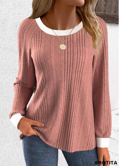 Maison > Hauts > sweats et sweats à capuche/ sweat rotita patchwork vieux rose col rond manches longues