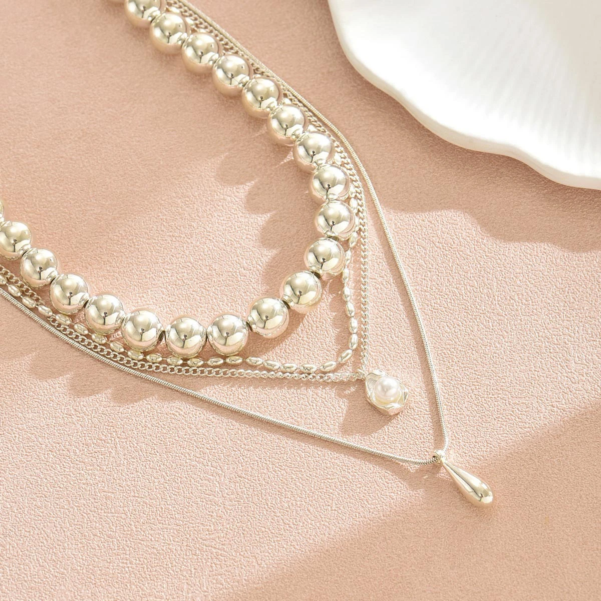 Maison > Bijoux > colliers et pendentifs/ Collier à plusieurs rangs de perles en plastique blanc en forme de larme