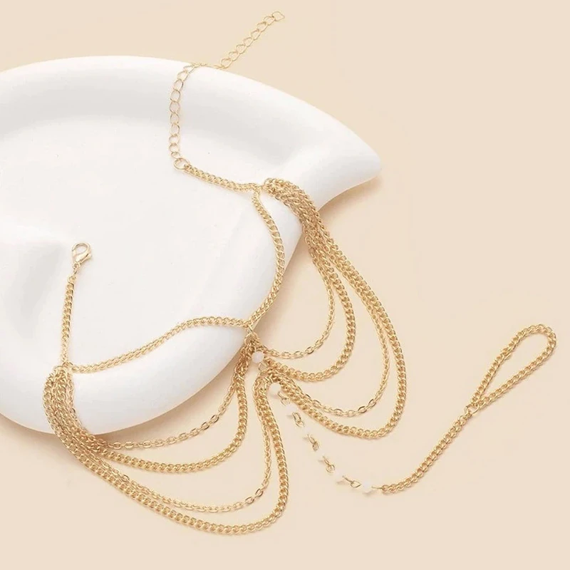 Maison > Bijoux > Bracelets de cheville/ bracelet de cheville multicouche en alliage de perles couleur or