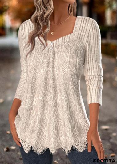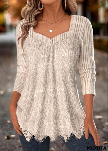 Nouvelle dans T-shirt beige à manches longues et col carré couvrant le ventre Rotita