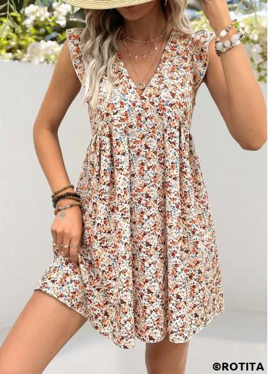 Nouvelle dans Robe courte plissée trapèze à imprimé floral blanc Rotita