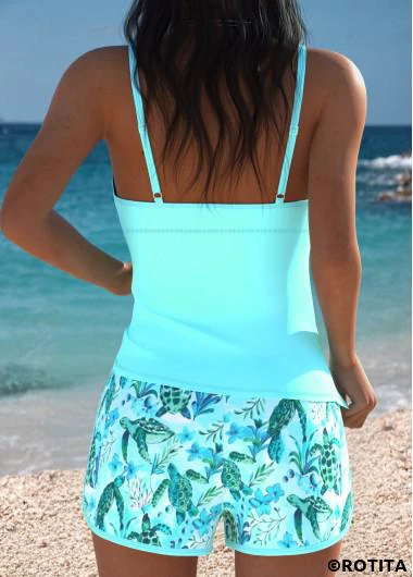 Maison > Maillots de bain > Tankinis > Ensembles Tankini/ Ensemble tankini Rotita à imprimé marin cyan couvrant le ventre