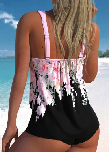 VenteDimensionnement Flexible Ensemble tankini à imprimé floral et ourlet croisé Rotita grande taille