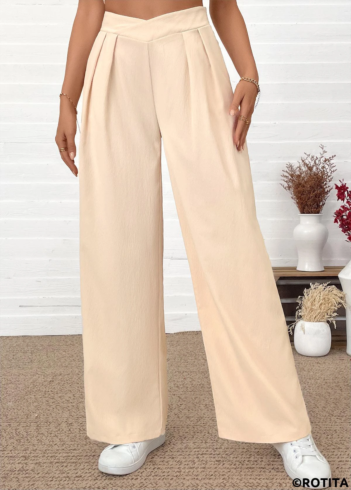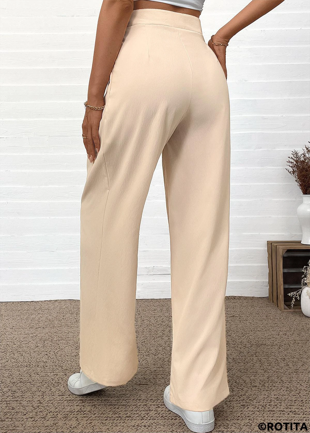 Maison > Bas > Pantalon/ pantalon beige à poches jambe large taille élastique taille haute