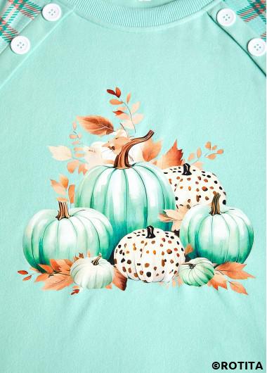 Vente flash sweat-shirt à col rond vert menthe à imprimé citrouille et boutons rayés Rotita