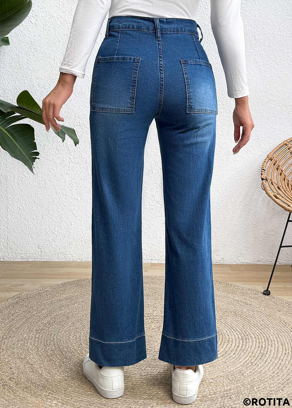 Maison > Bas > Pantalon/ jean bleu à poches et jambes larges avec braguette boutonnée