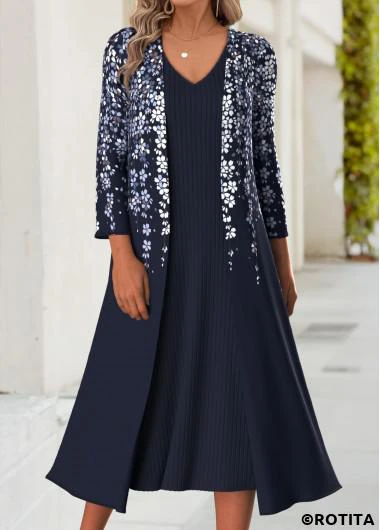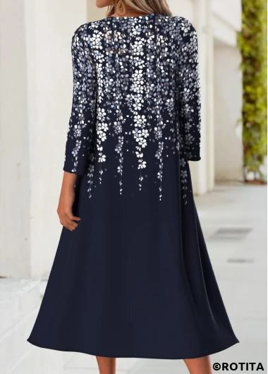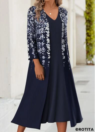 Maison > Robes/ robe et cardigan bleu foncé à imprimé floral couvrant le ventre de Rotita