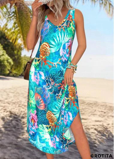 Nouvelle dans Robe sans manches Rotita à imprimé marin multicolore couvrant le ventre
