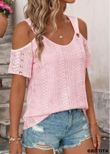 Maison > Hauts > t-shirts et t-shirts/ T-shirt rose à manches courtes et col rond Rotita découpé