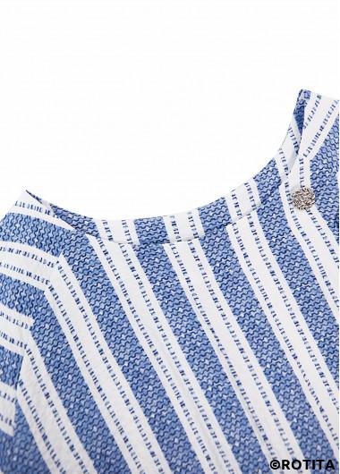 Maison > Hauts > chemisiers/ chemisier bleu à manches courtes et col rond à imprimé géométrique Rotita