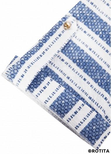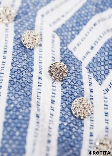 chemisier bleu à manches courtes et col rond à imprimé géométrique Rotita