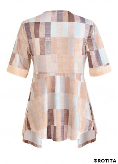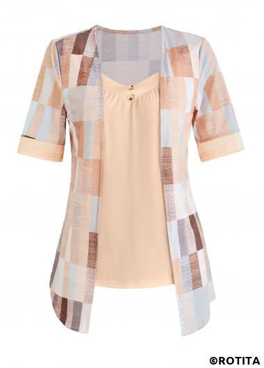Maison > Hauts > chemisiers/ rotita grande taille beige imprimé géométrique faux deux pièces twinset