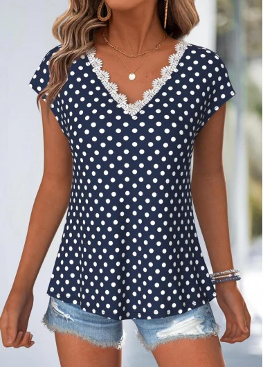 Nouvelle dans Rotita T-shirt à col en V bleu marine à pois