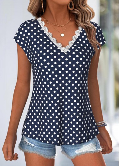 Maison > Hauts > t-shirts et t-shirts/ Rotita T-shirt à col en V bleu marine à pois