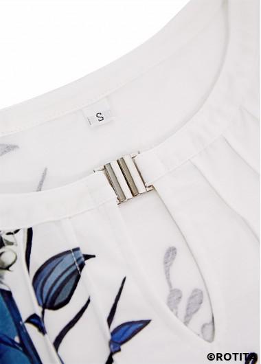 rotita t-shirt blanc à col rond et imprimé floral découpé