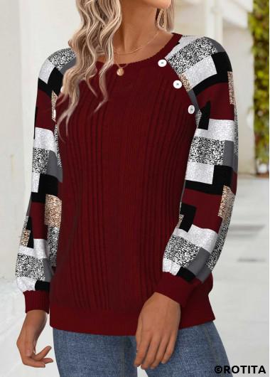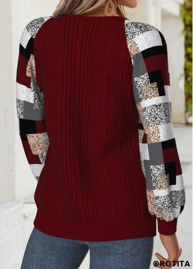 Maison > Hauts > sweats et sweats à capuche/ Sweat-shirt Rotita rouge foncé à col rond et imprimé géométrique couvrant le ventre