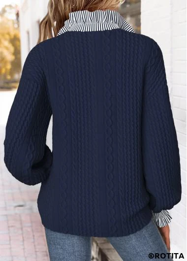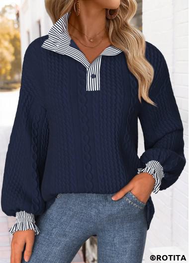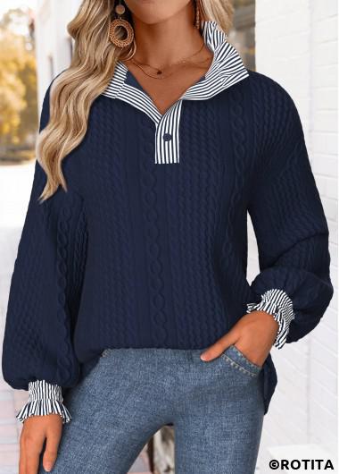 Nouvelle dans Sweat-shirt à manches longues rayé bleu marine à ourlet arrondi Rotita