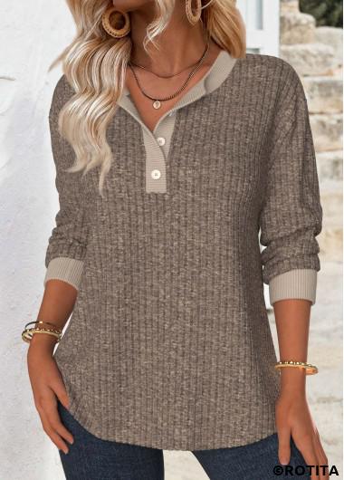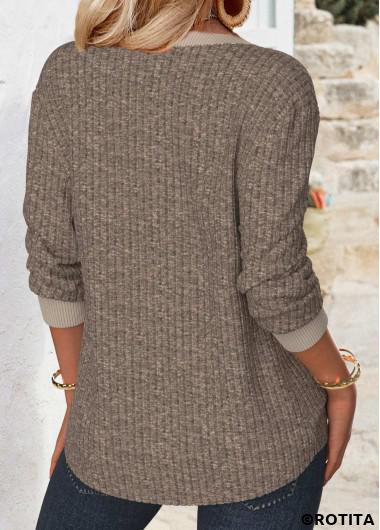 Nouvelle dans Sweat-shirt à manches longues et col fendu gris-brun couvrant le ventre Rotita