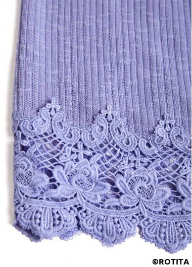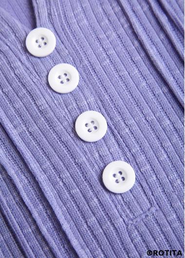 Vente T-shirt à manches longues et col fendu violet poussiéreux avec broderie Rotita