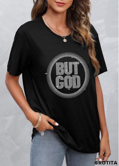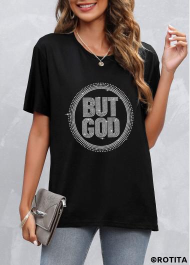 Vente T-shirt noir à col rond avec lettres estampées à chaud