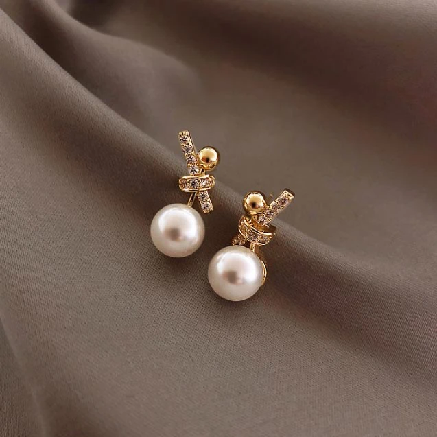 Home > Jewelry > Earrings/ Golden Pearl Bow Design Alloy Earrings
