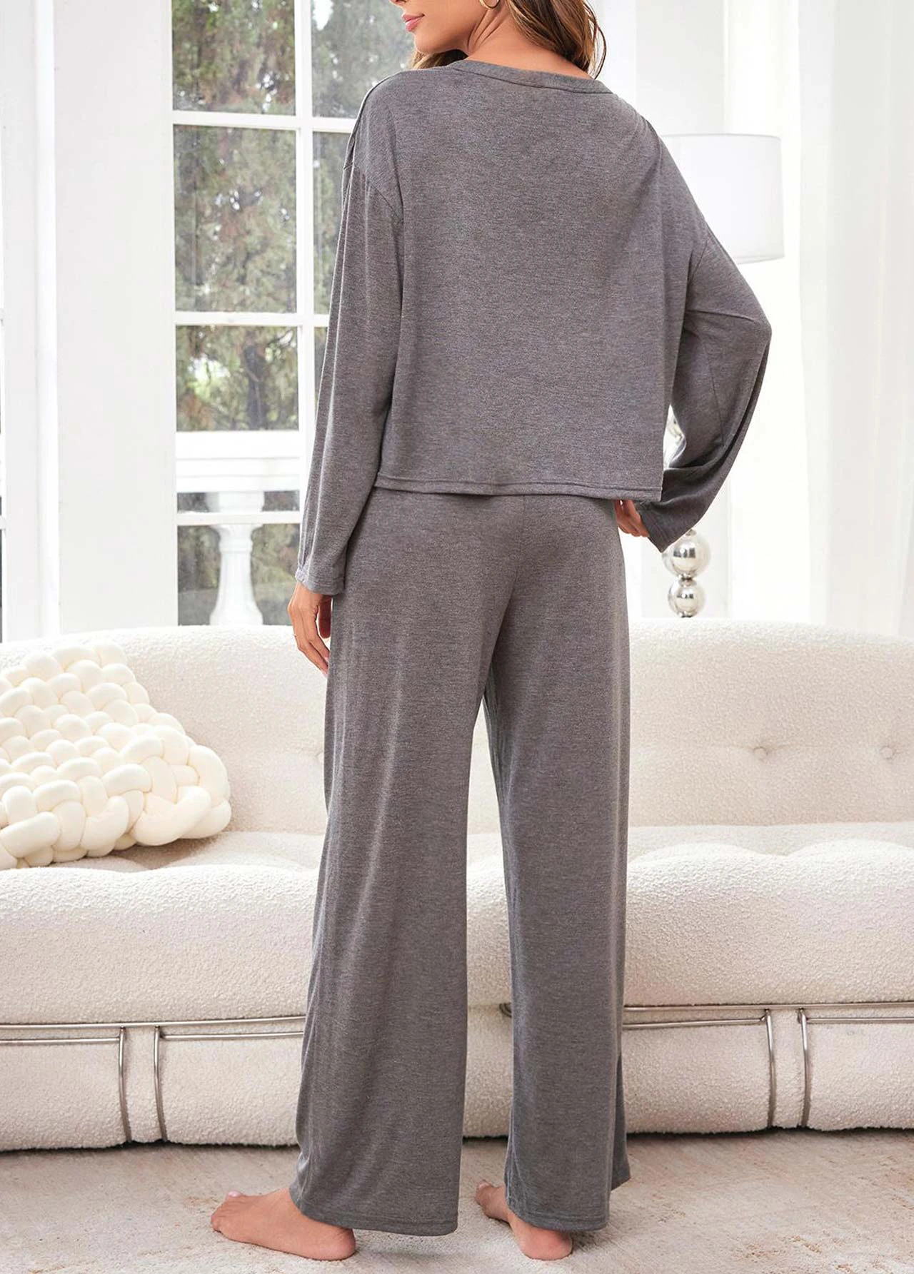 Home > Loungewear > Loungewear Sets/ Grey Round Neck Long Sleeve Lounge Top and Pants