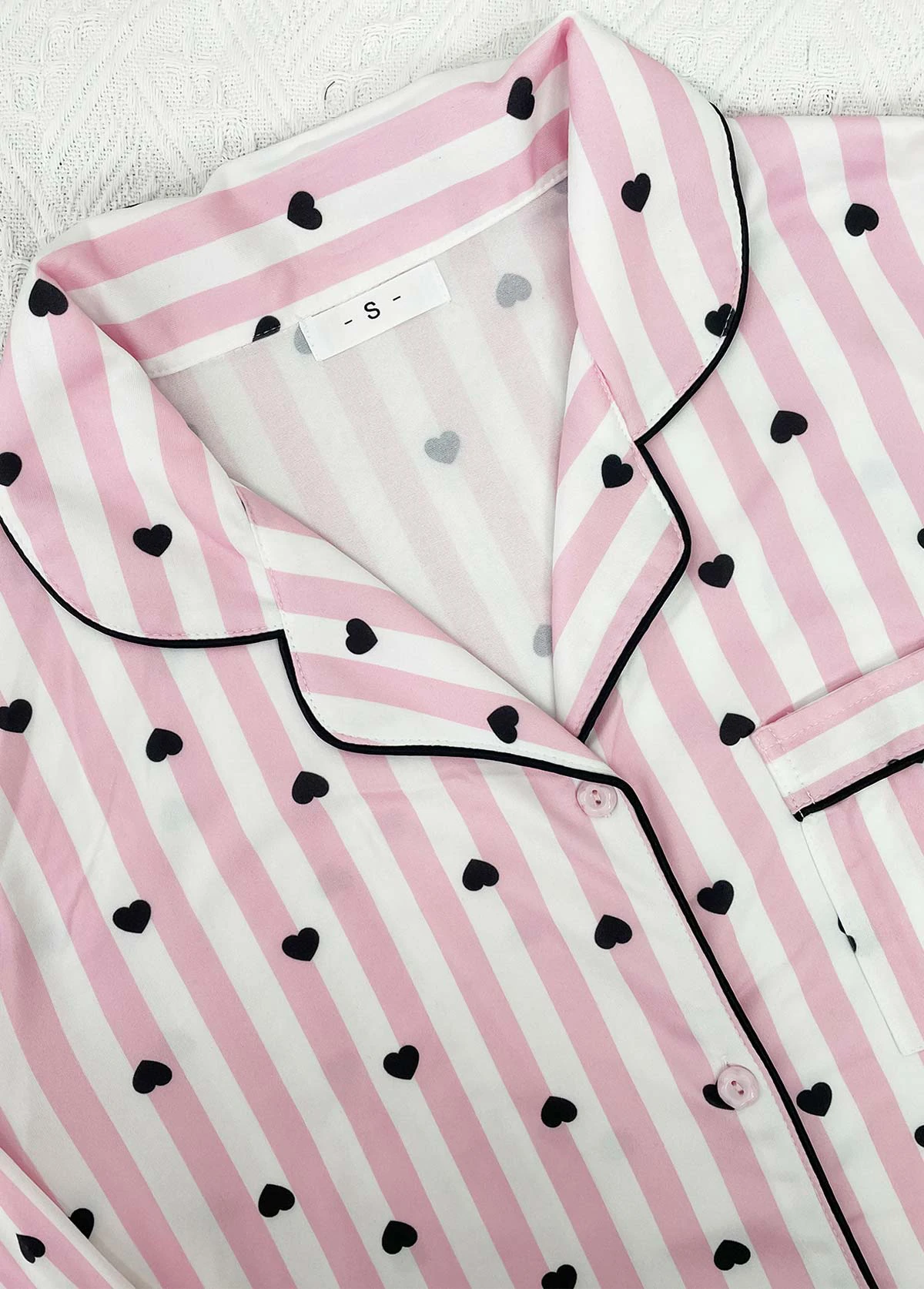 Heart Print Pink Long Sleeve Lounge Top and Pants