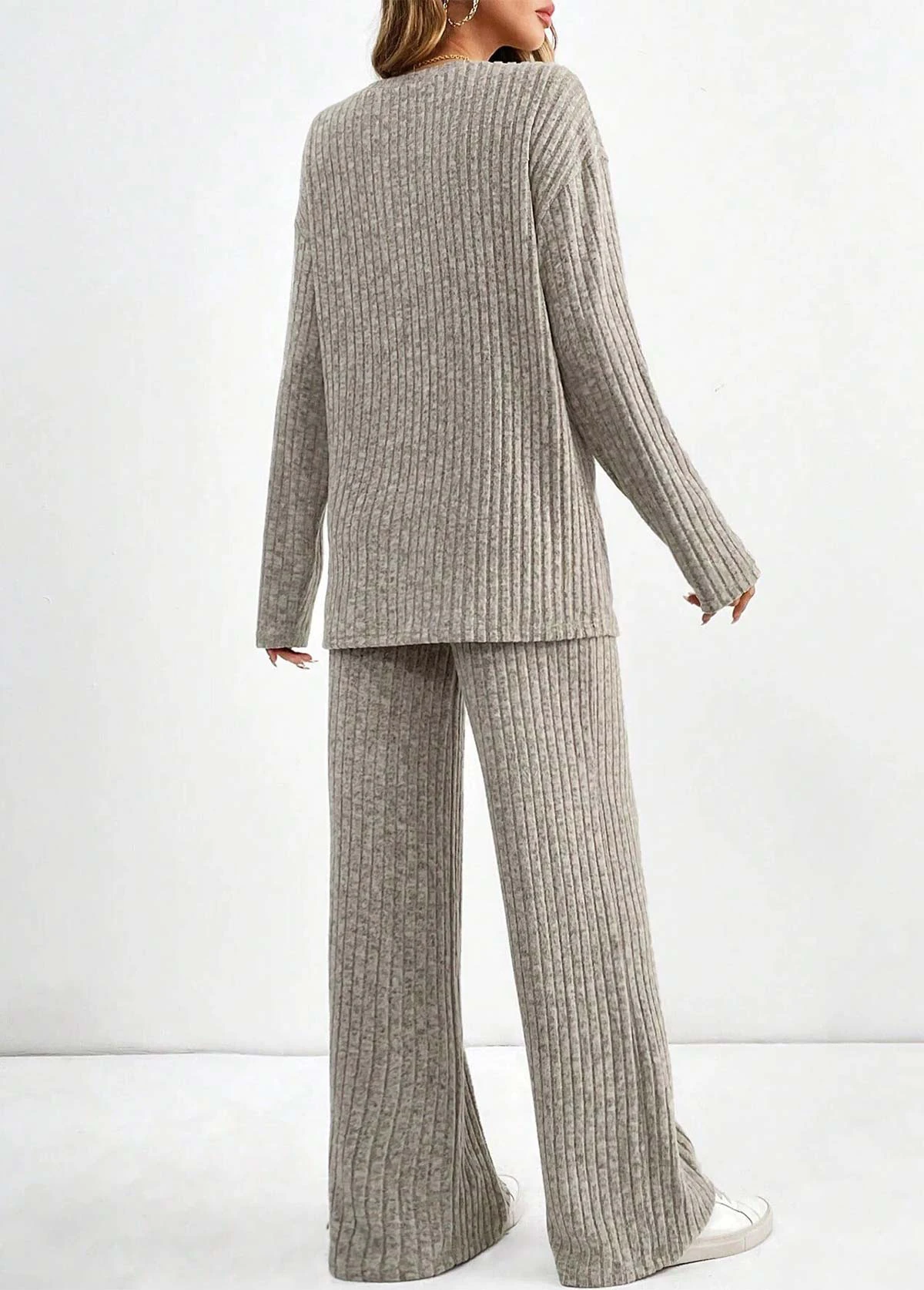 Home > Loungewear > Loungewear Sets/ Light Coffee Round Neck Lounge Top and Pants