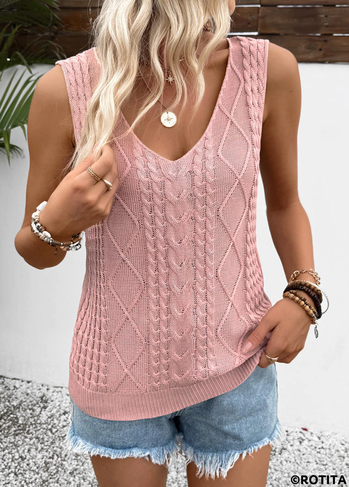 Home > Tops > Tank Tops & Camis/ Pink V Neck Sleeveless Tank Top