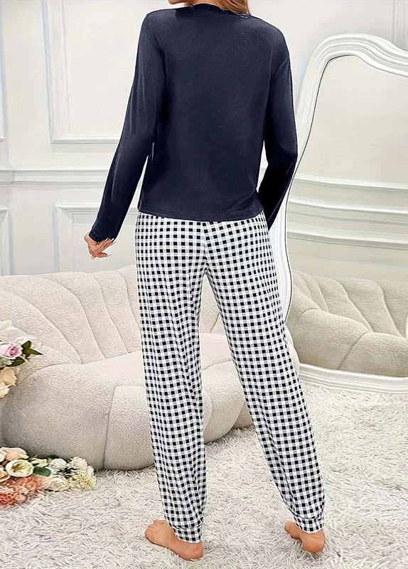 Sale Plaid Navy Round Neck Lounge Top and Pants