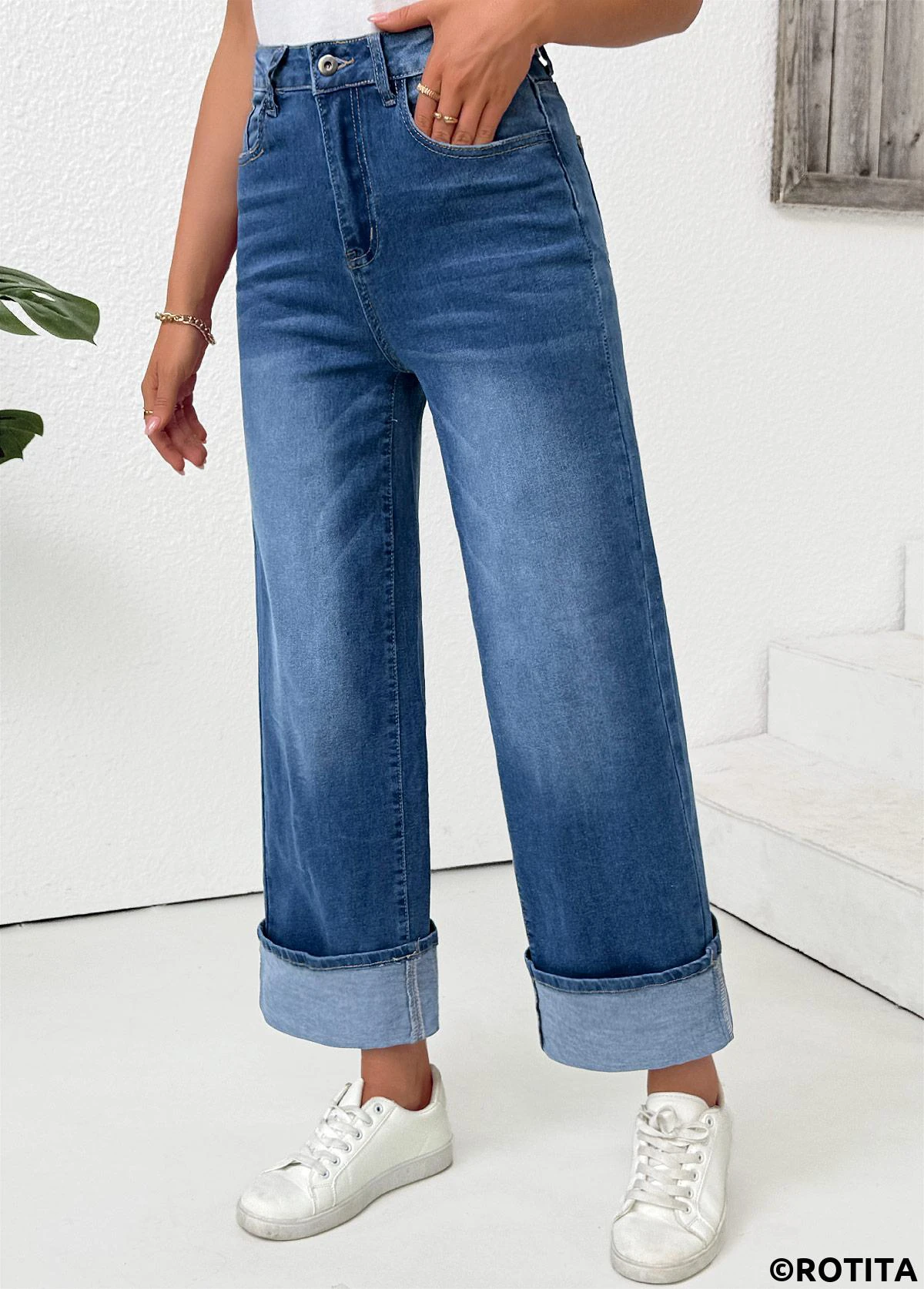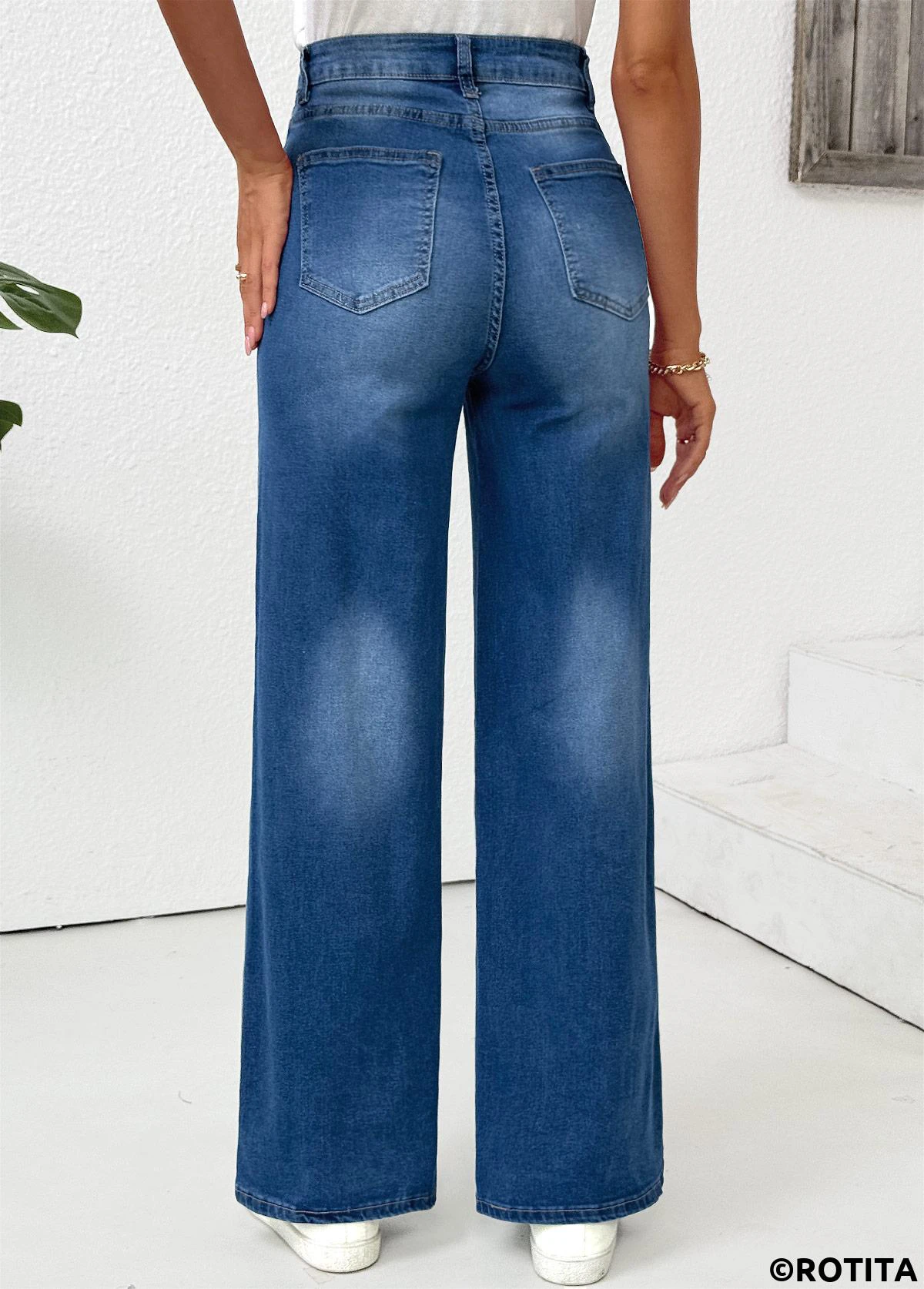 Sale Pocket Denim Blue Wide Leg Button Fly Pants