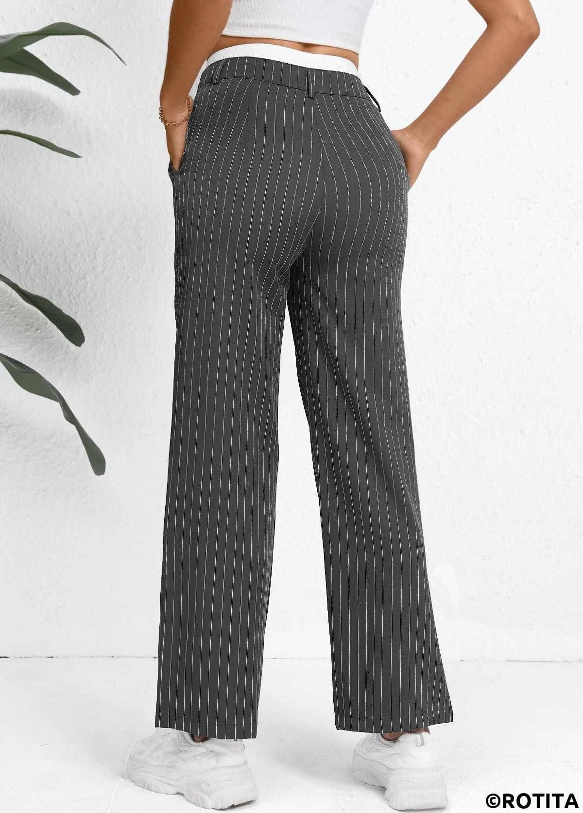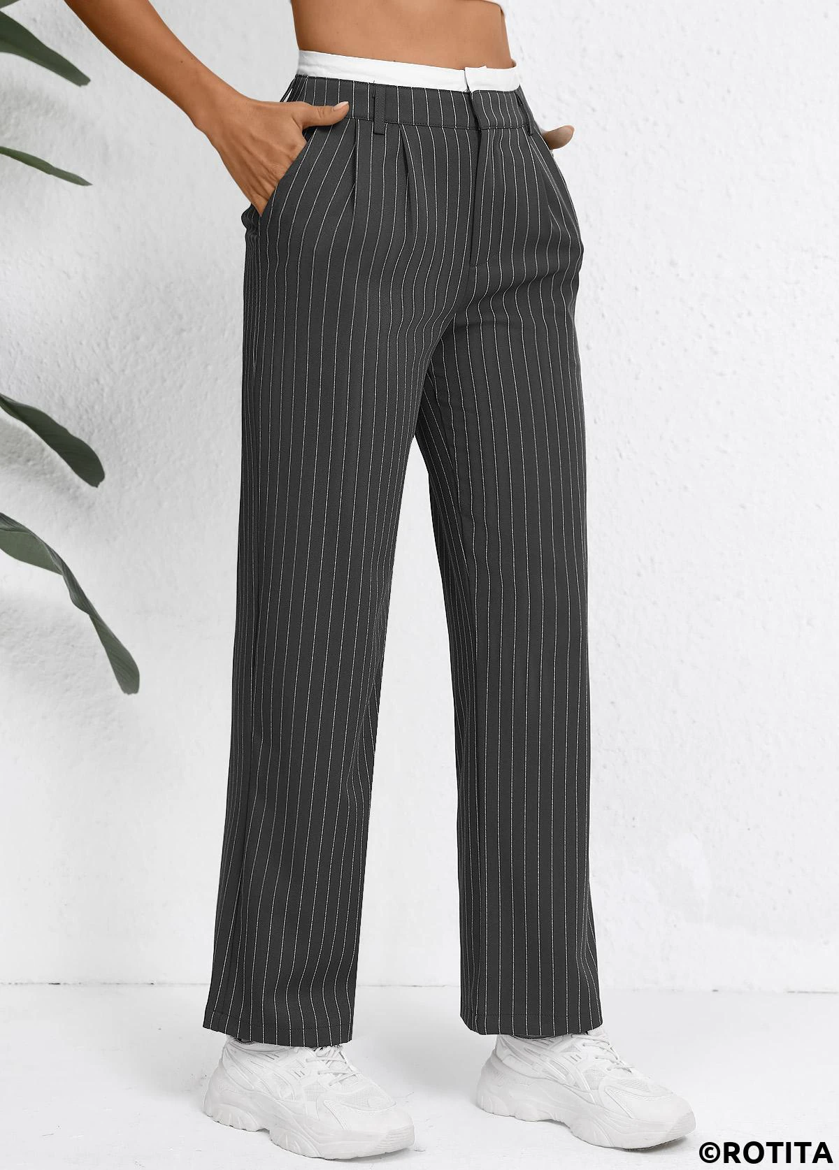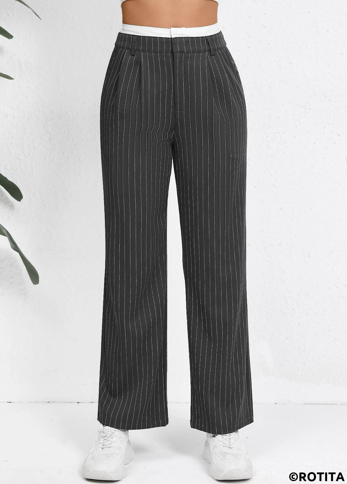 Pocket Striped Grey Straight Leg Zipper Fly Pants