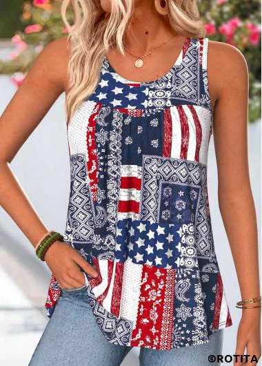 New In ROTITA American Flag Curved Hem Tribal Print Navy Tank Top
