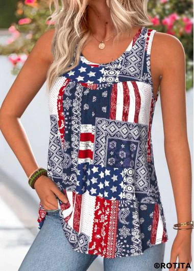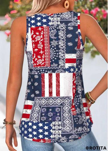 Home > Tops > Tank Tops & Camis/ ROTITA American Flag Curved Hem Tribal Print Navy Tank Top