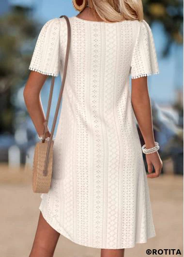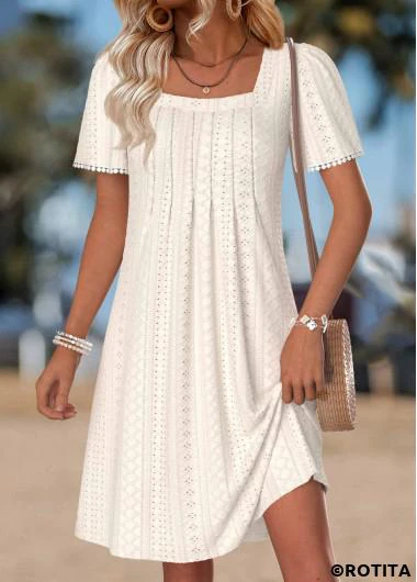 Home > Dresses/ ROTITA Beige Tummy Coverage Short Square Neck Dress