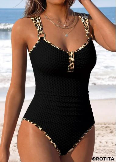ROTITA Black Tummy Coverage Leopard One Piece Swimwear